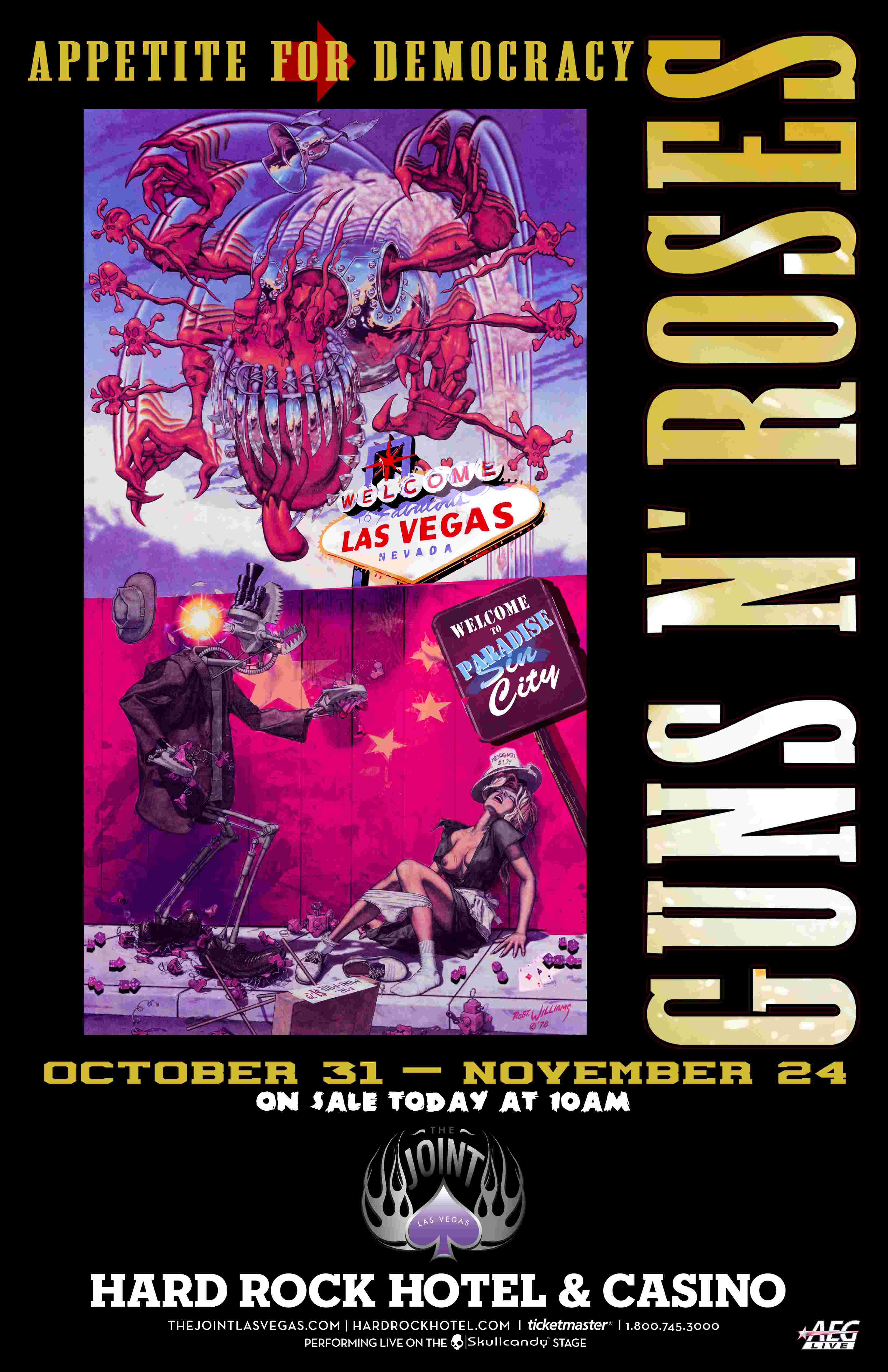 Tweet it: Rock legends @GUNSNROSES take over #Vegas w/ #AppetiteForDemocracy residency @TheJointLV @HardRockHotelLV 10/31-11/24! On sale Fri @10a!