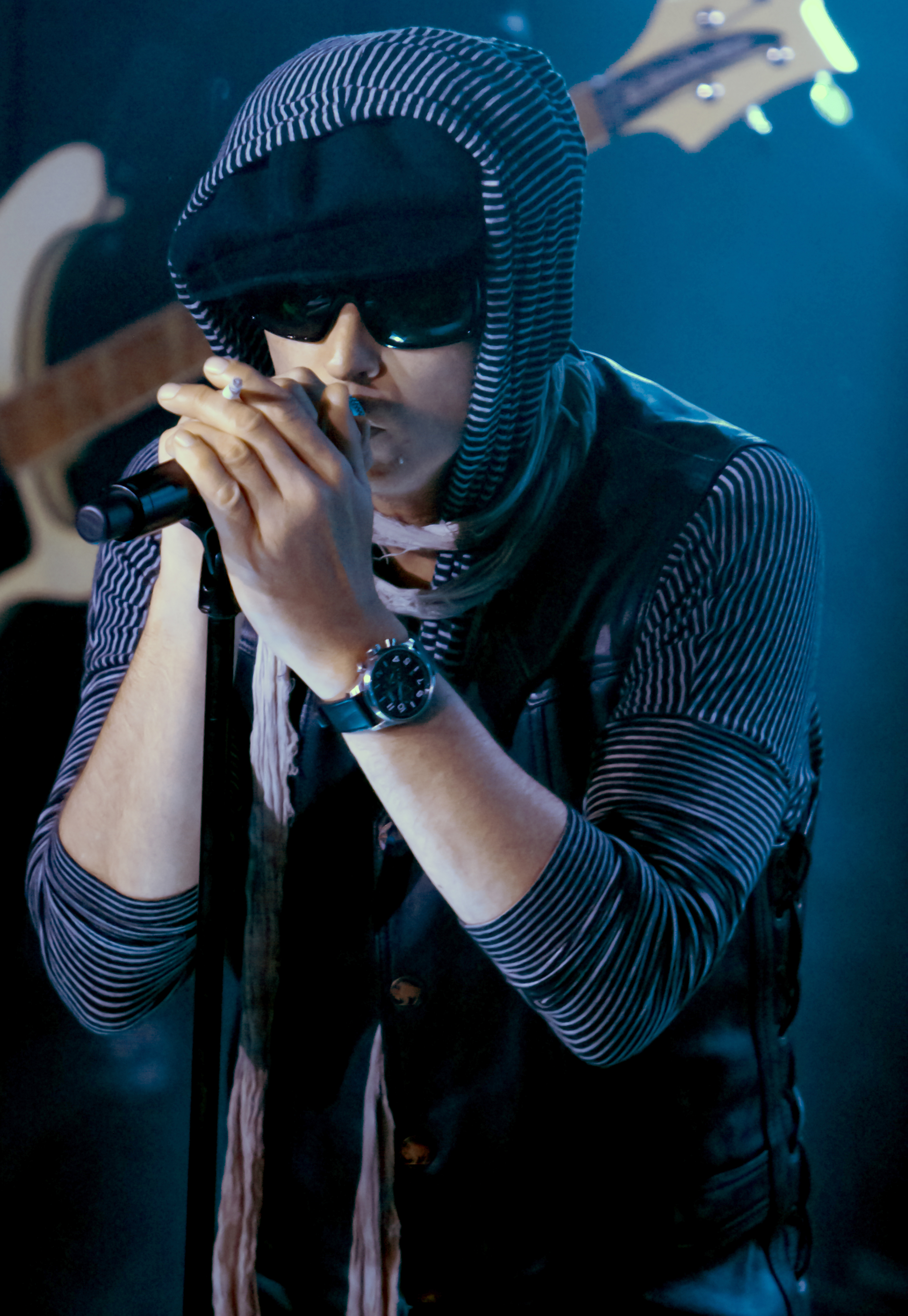 Several minutes before the show was to start, The Wildabouts performed an opening jam session without Weiland. Scott Weiland entered around 10:59 with his signature entrance of holding a cigarette and sunglasses, but unlike Weiland’s performance on December 18, 2008 where he was dressed in a suit and a fedora, Weiland was more casual by wearing, a hoodie, a vest and a English flat hat.